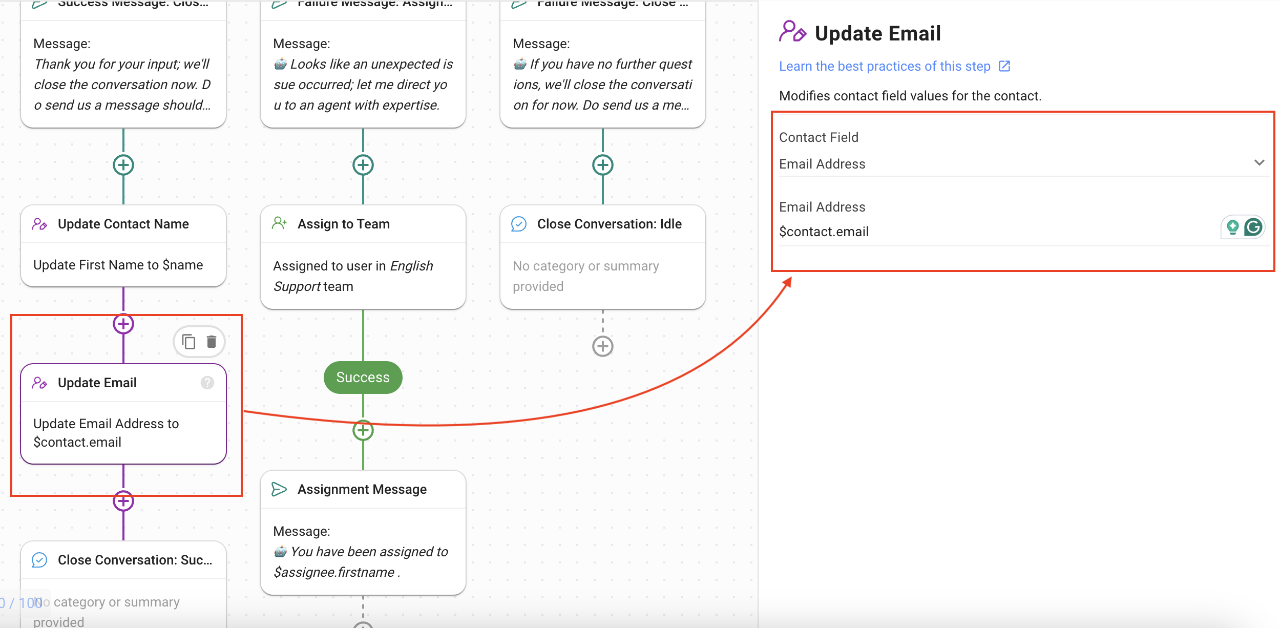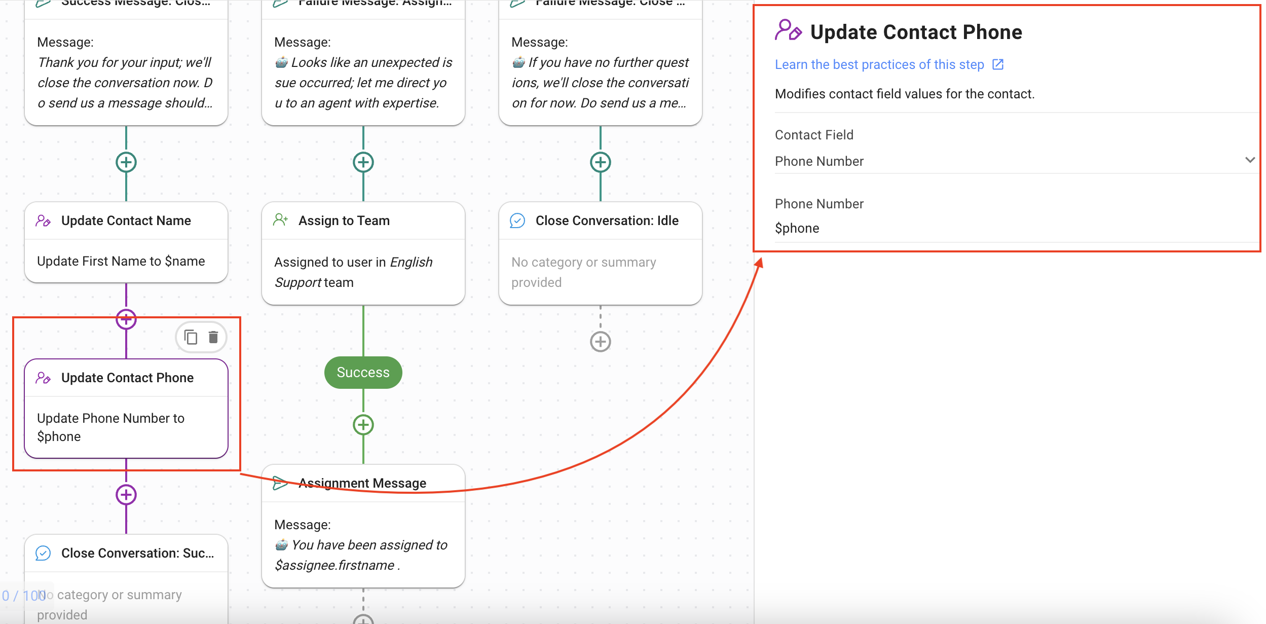 Close Conversation: Success: This Step closes the conversation using the Close Conversation Step.