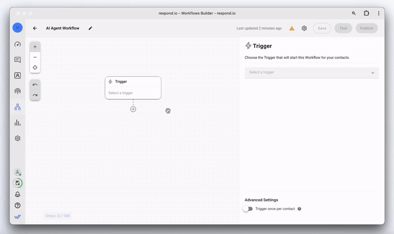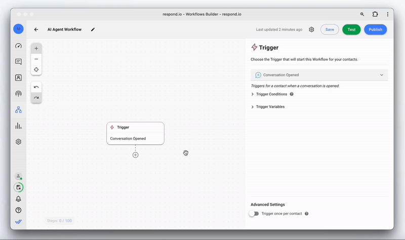 In a Workflow, the AI Agent Step automatically transfers the conversation to the Respond AI chatbot, AI Agent. The AI Agent interacts with the Contact without human intervention until the conversation concludes.